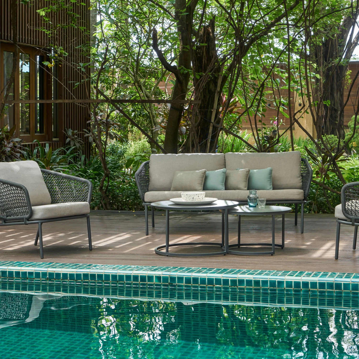 Mit dem Lounge-Set ‚Eagle‘ gestalten Sie Ihre Outdoor-Sitzlandschaft auf eine äußerst komfortable und zudem stilvolle Art. Dieses fünfteilige Set präsentiert sich in der modischen Farbe Anthrazit und überzeugt sowohl mit witterungsbeständigen, pflegeleichten Materialien als auch mit ergonomisch gepolsterten Auflagen.