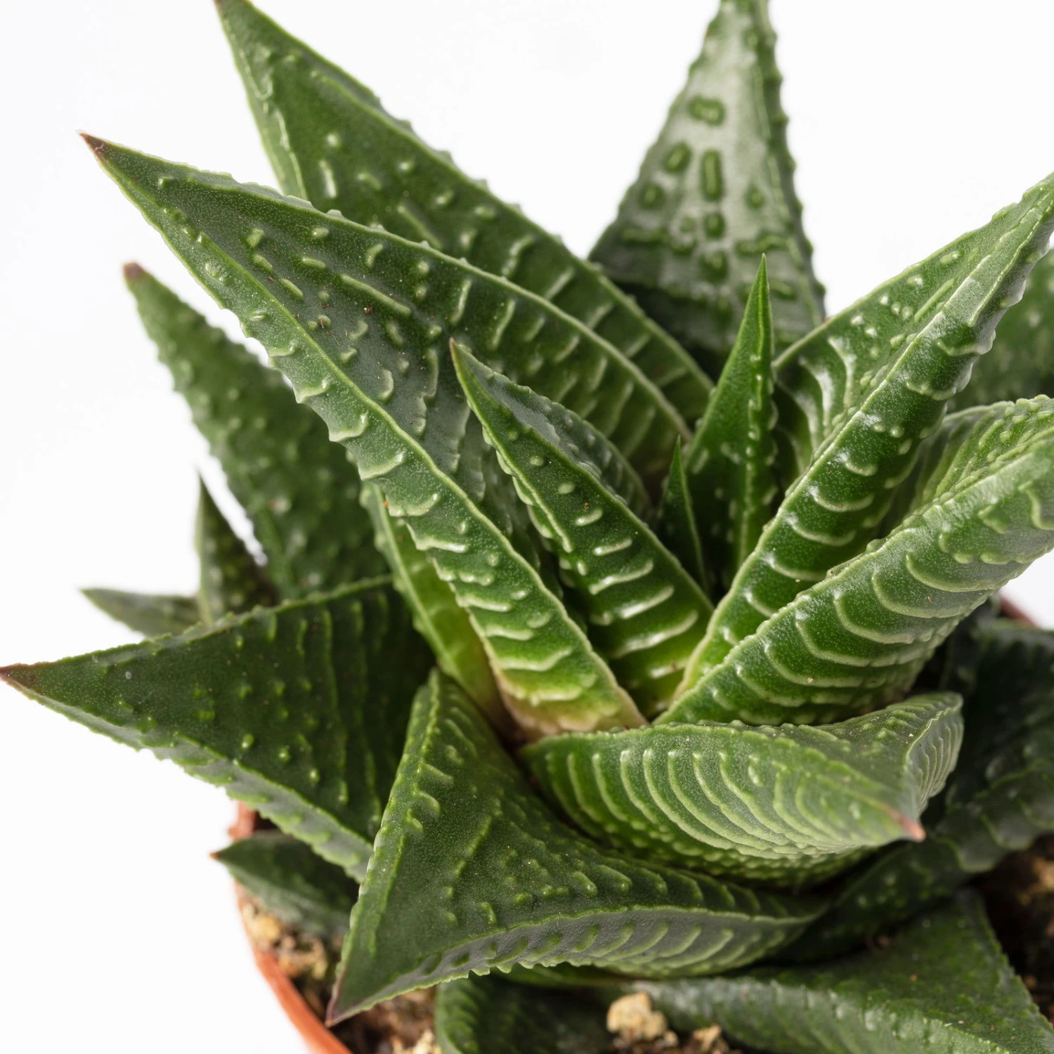 Je nach Verfügbarkeit erhalten Sie unterschiedliche Pflanzen der Gattung Echeveria und Crassula jeweils im 6 cm Ø Pflanztopf inkl. dekorativem Übertopf ‚Scandic terracotta‘.