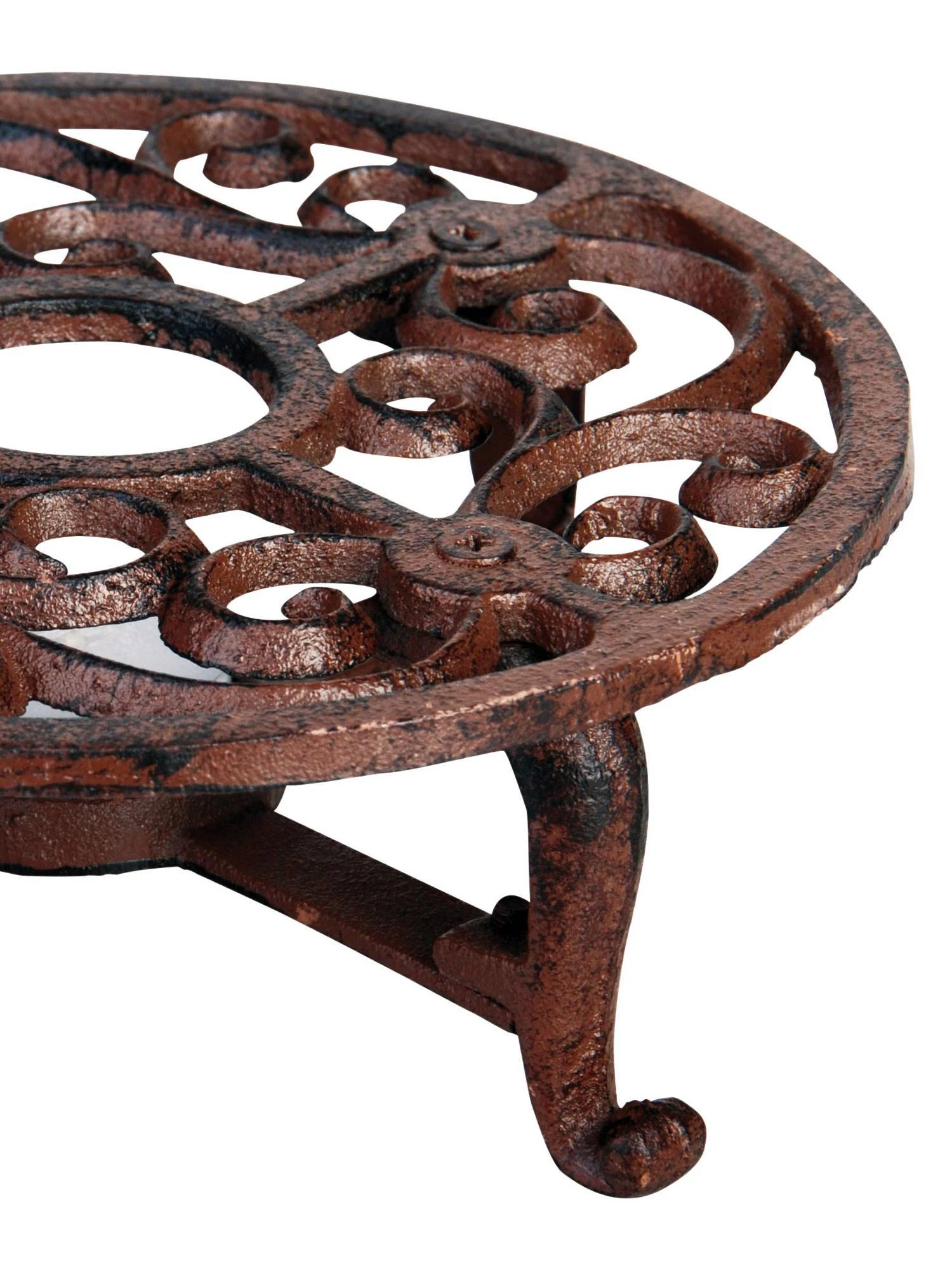Dieses Stövchen im viktorianischen Stil ist aus langlebigem Gusseisen im Antik-Rostbraun hergestellt und aufwendig verziert. Nutzen Sie das Stövchen, um eine Tee- oder Kaffeekanne warmzuhalten oder aber als einen Unterständer für eine Stumpenkerze. Das sympathische Stövchen ist vielseitig einsetzbar und stabil.